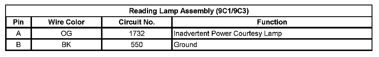 Reading Lamp Assembly (9C1/9C3)