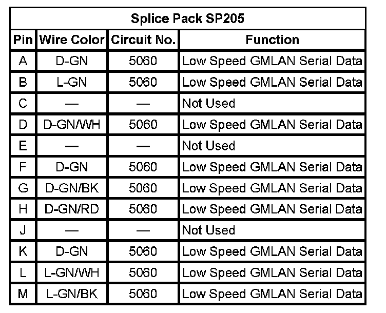 Splice Pack SP205 (Pin A To M):