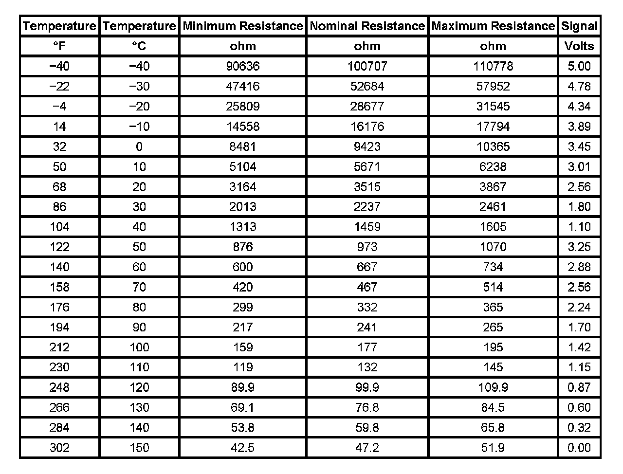 Transmission Fluid Temperature Sensor Specifications:
