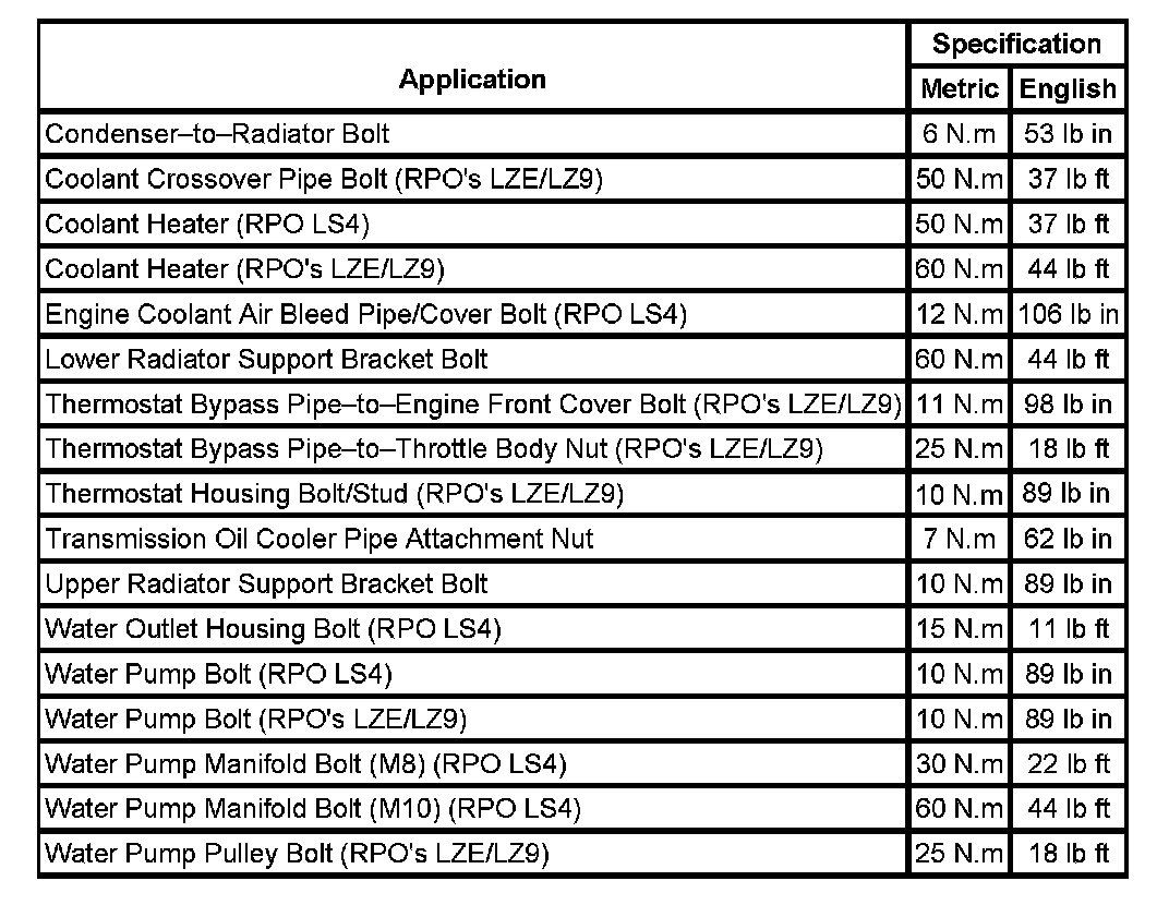 Fastener Tightening Specifications: