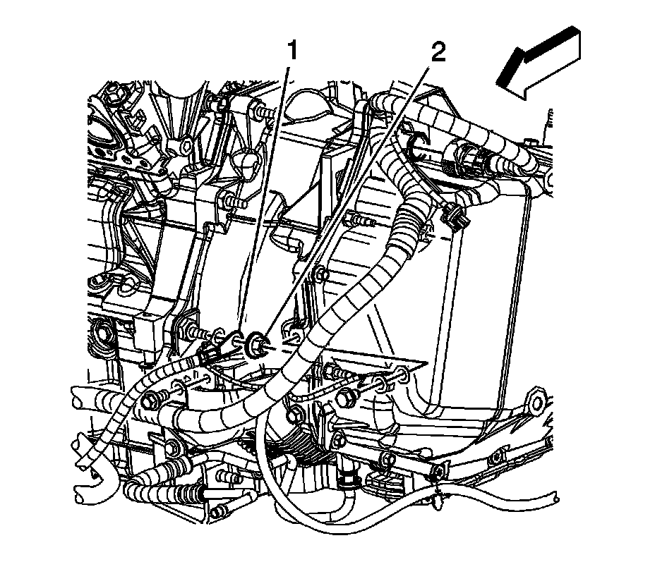 17. Remove the battery cable ground (1) from the transaxle stud.