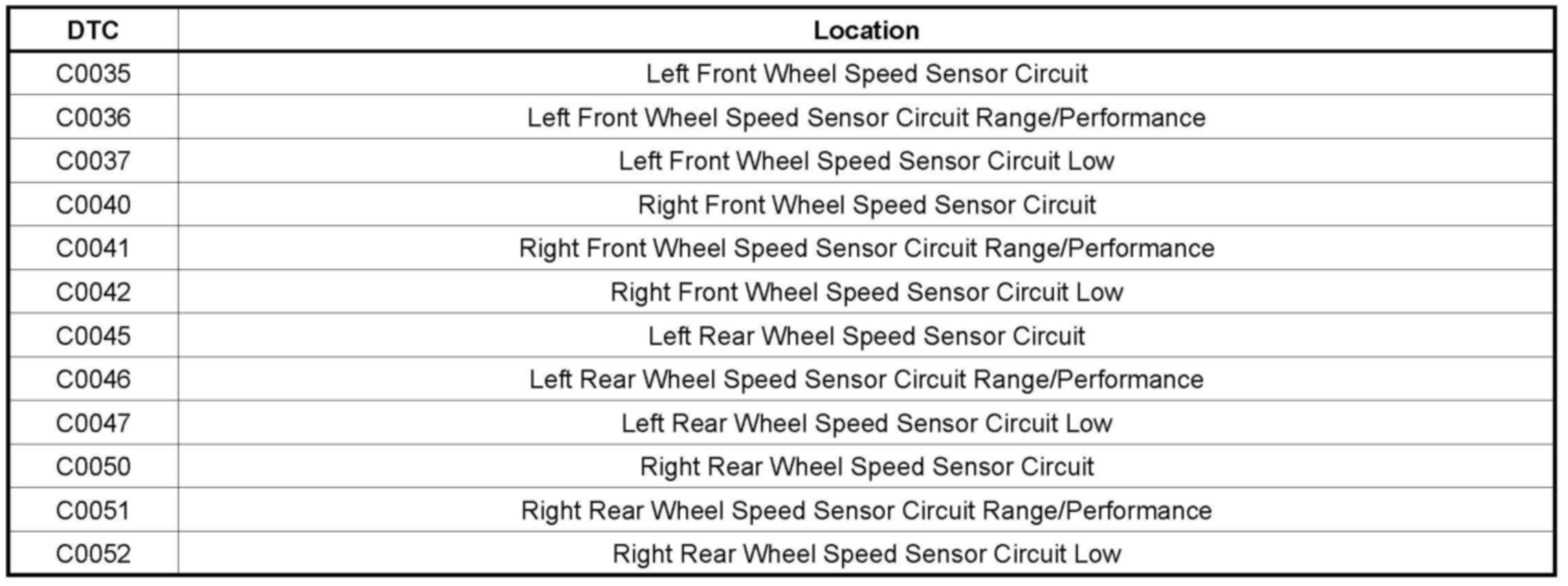 Some customers may comment that the Antilock Brake System (ABS), Traction Control System (TCS) or StabiliTrak(R) (if equipped) warning lights are illuminated. Upon investigation, one or more of the following DTCs may be in history or current.