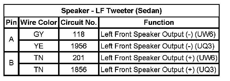 Speaker - LF Tweeter (Sedan)