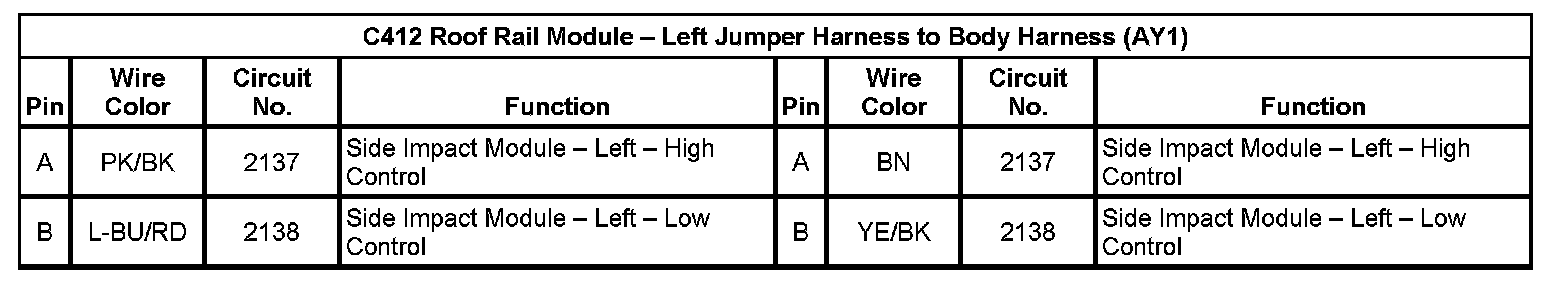 C412 Roof Rail Module - Left Jumper Harness To Body Harness (AY1) (Pin A To B):