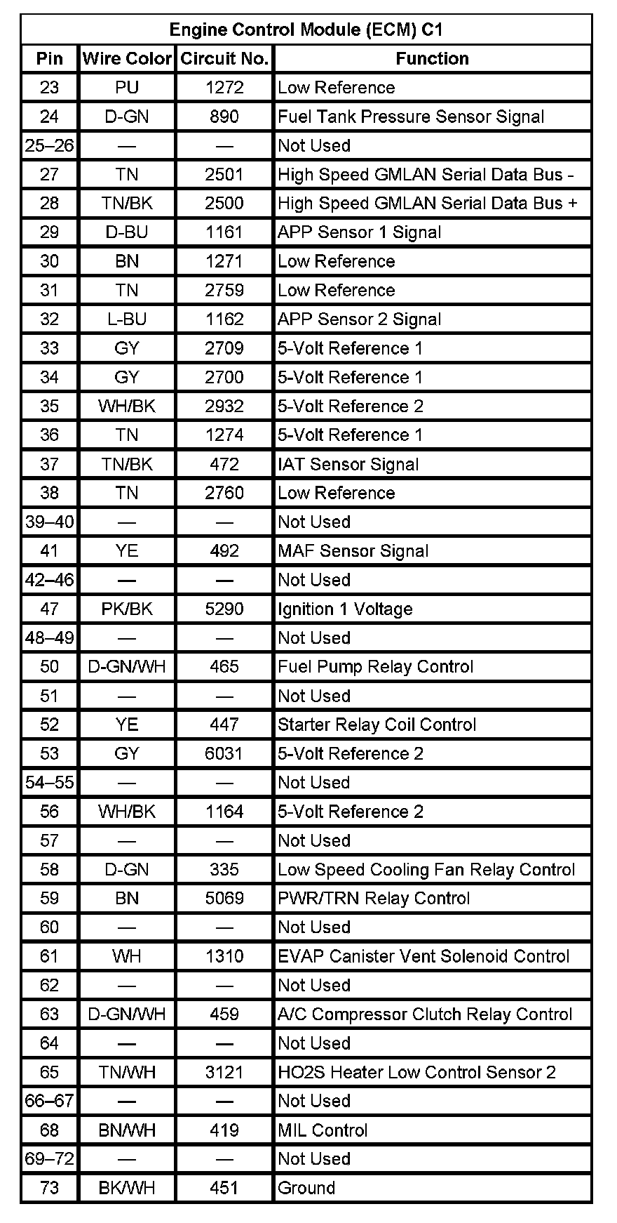 Engine Control Module (ECM) C1 (Pin 23 To 73):