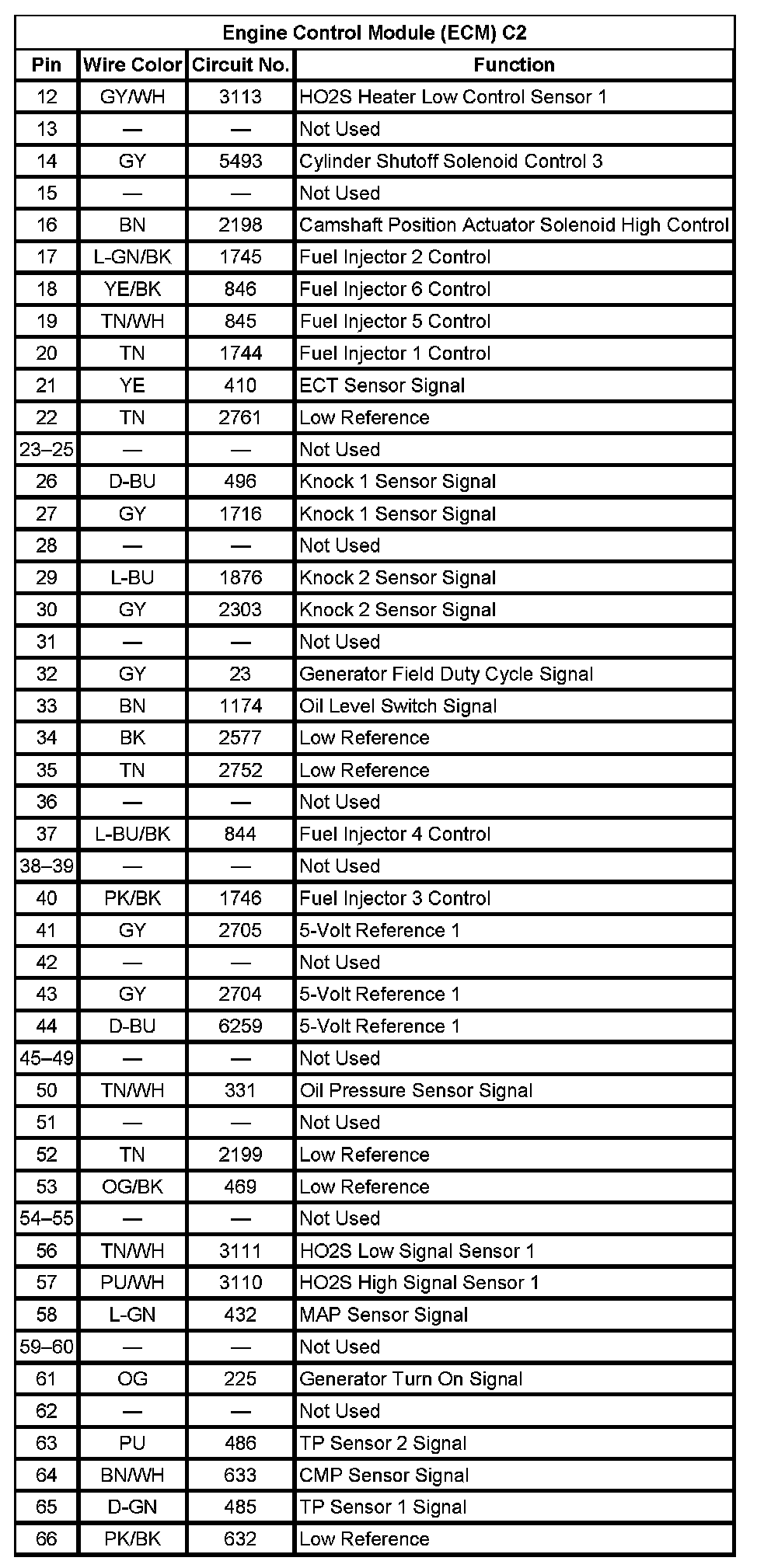 Engine Control Module (ECM) C2 (Pin 12 To 66):