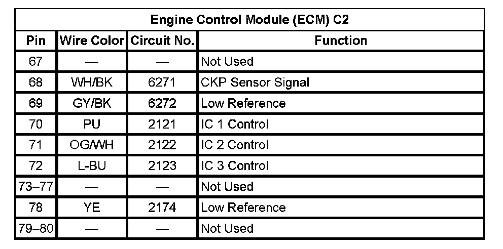 Engine Control Module (ECM) C2 (Pin 67 To 80):