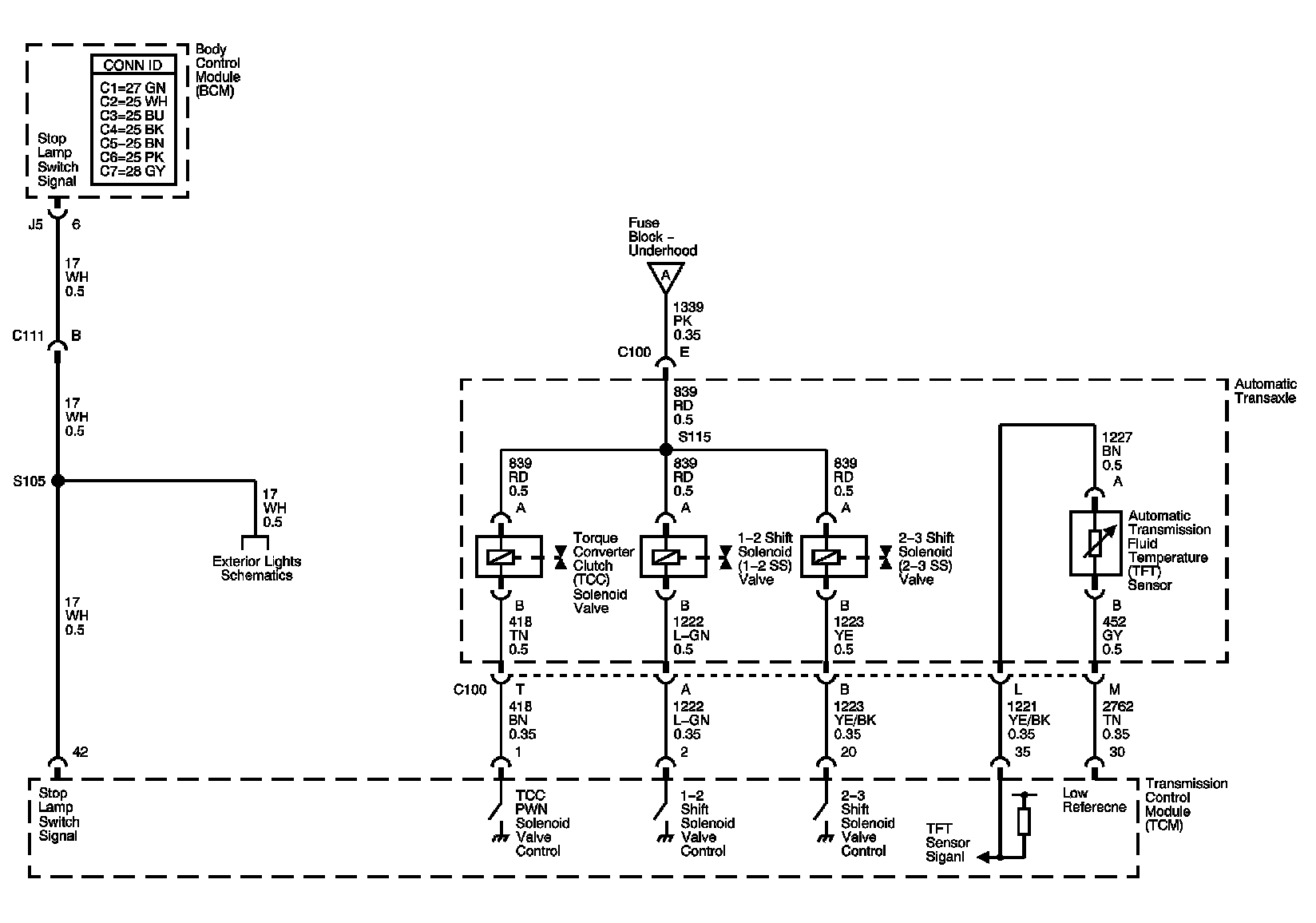 Stop Lamp Switch Signal, TFT Sensor, TCC, and Shift Solenoids