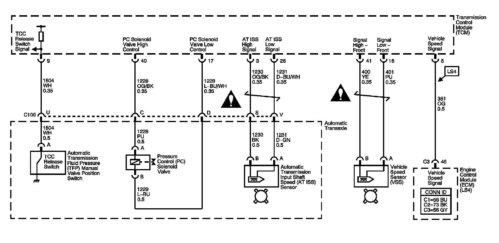 VSS, AT ISS Sensors, Pressure Control Solenoid Valve, and TCC Release Switch