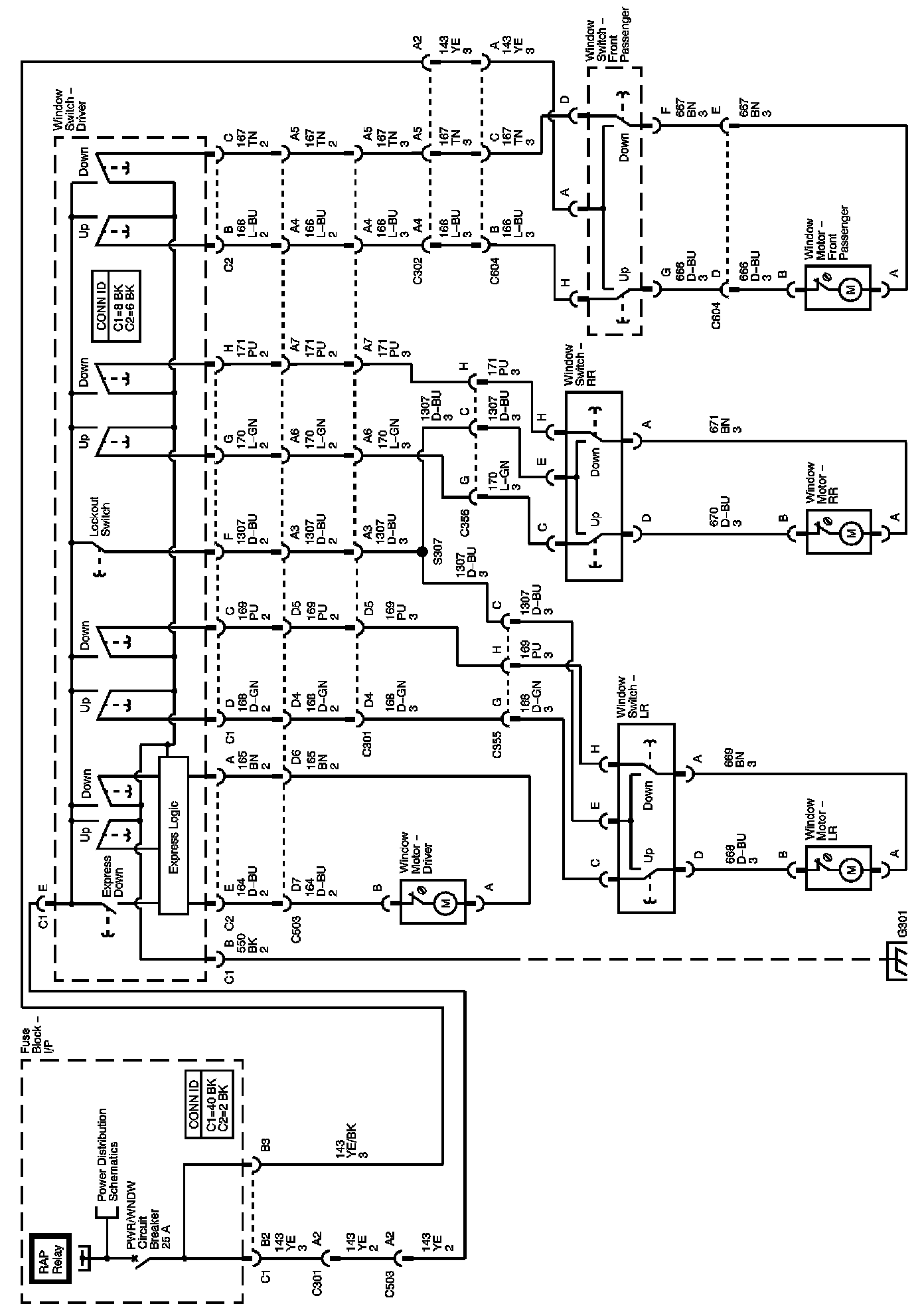 The locations for the Connectors, Grounds, Splices, and Grommets shown within these diagrams can be found via their numbers at Vehicle Locations.
