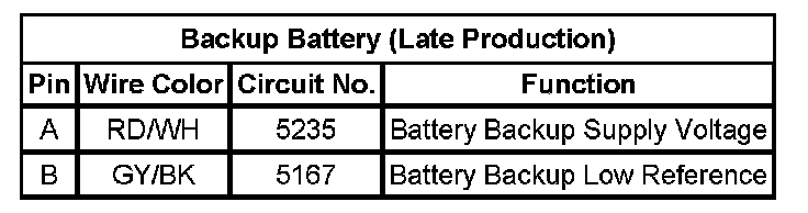 Backup Battery (Late Production)