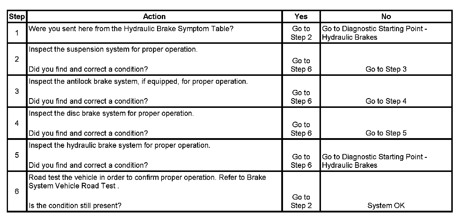 2. Suspension components that are not operating properly may cause a disturbance to the vehicle during application of the brake system.