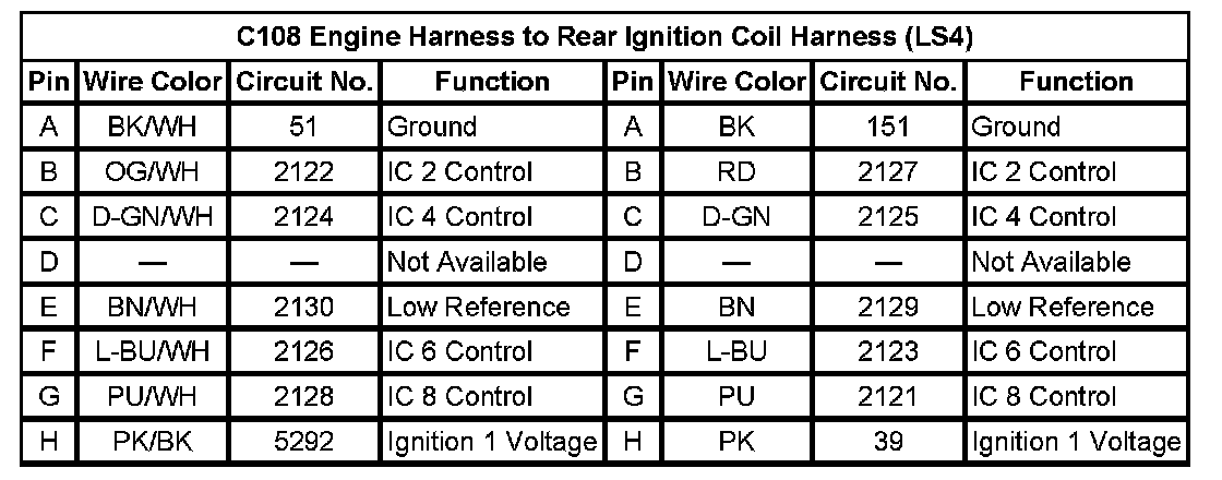 C108 Engine Harness To Rear Ignition Coil Harness (LS4) (Pin A To H):