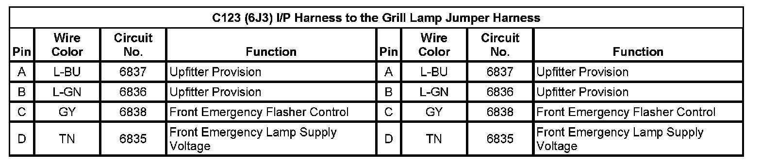 C123 (6J3) I/P Harness To The Grill Lamp Jumper Harness (Pin A To D):