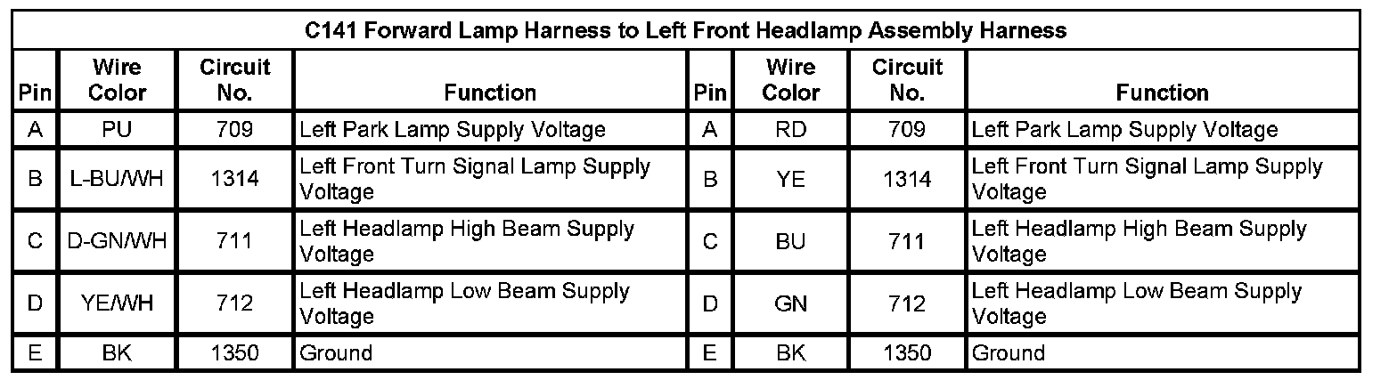 C141 Forward Lamp Harness to Left Front Headlamp Assembly Harness