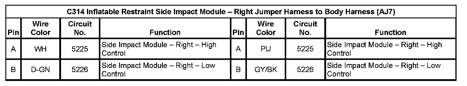 C314 Inflatable Restraint Side Impact Module - Right Jumper Harness To Body Harness (AJ7) (Pin A To B):
