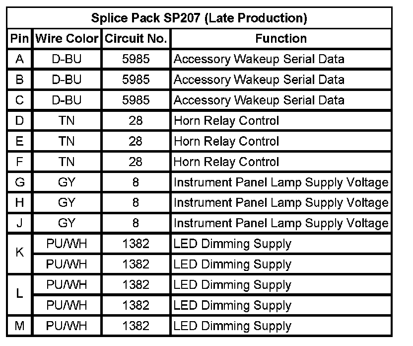 Splice Pack SP207 (Late Production) (Pin A To M):