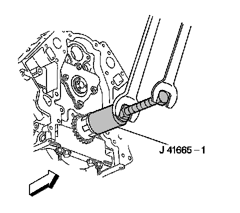 4. Using the J 41665, install the crankshaft sprocket onto the crankshaft until fully seated against the crankshaft flange.