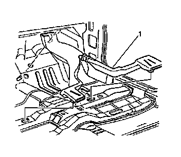 2. Remove the rear floor air outlet duct (1) from the holes in the floor reinforcement.