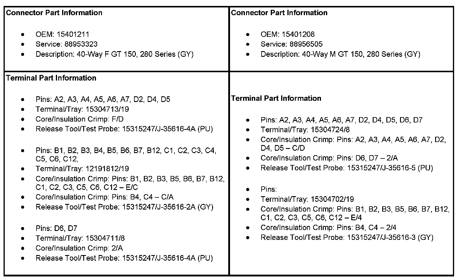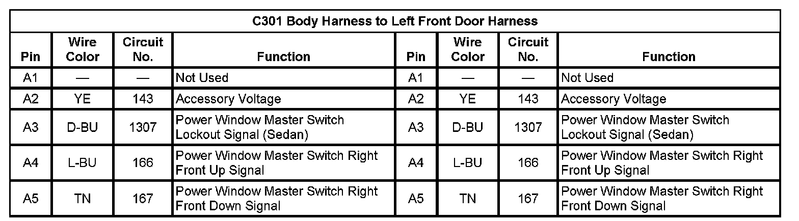 C301 Body Harness To Left Front Door Harness (Pin A1 To A5):