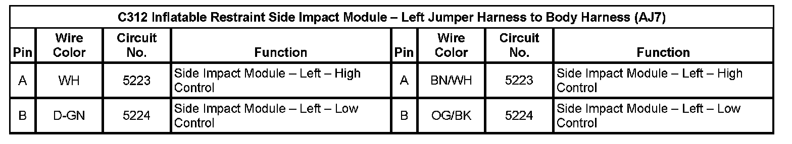 C312 Inflatable Restraint Side Impact Module - left Jumper Harness To Body Harness (AJ7) (Pin A To B):
