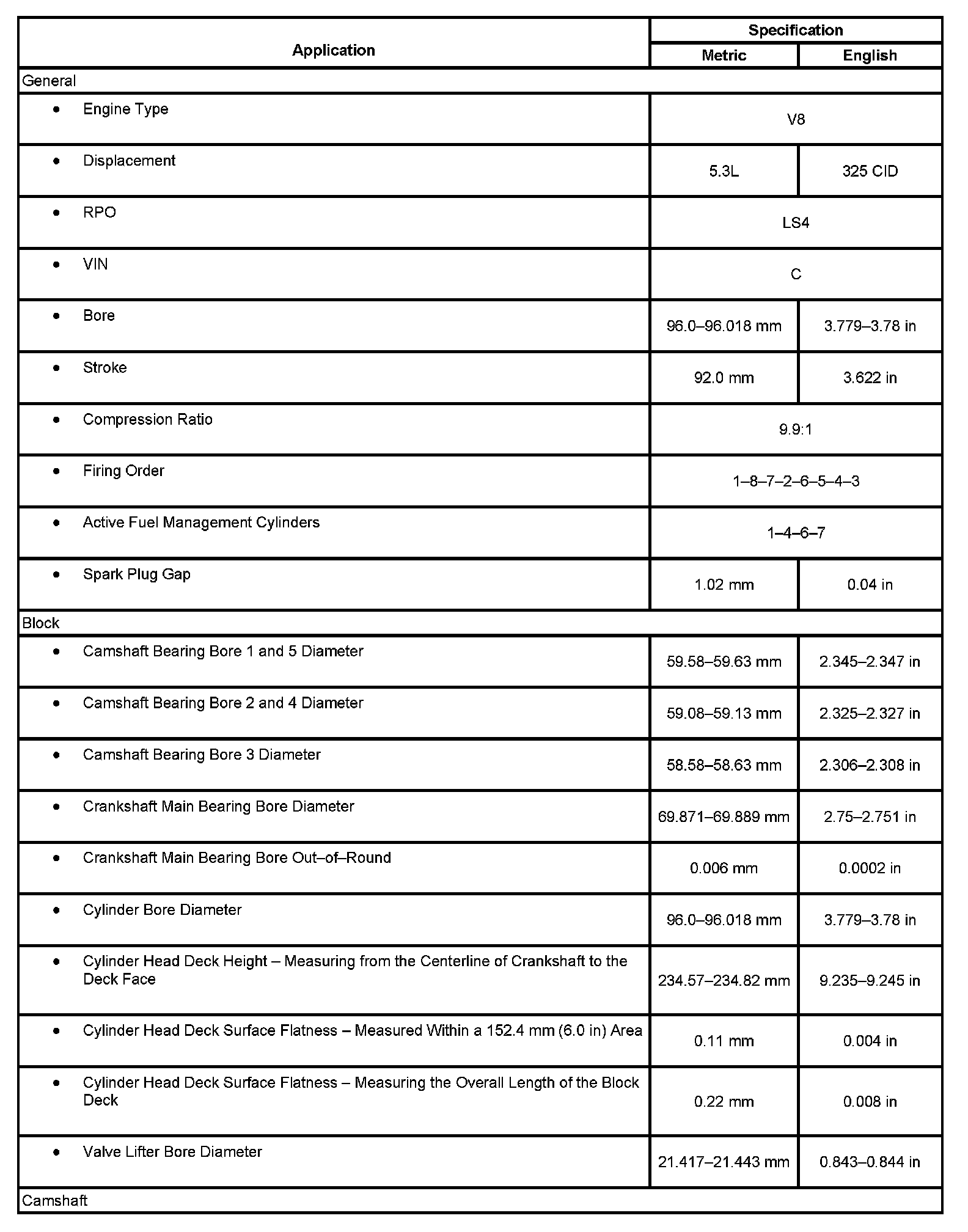 Engine Mechanical Specifications