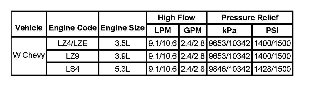 Power Steering Pump Specifications:
