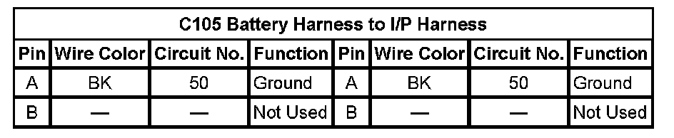 C105 Battery Harness To I/P Harness (Pin A To B):