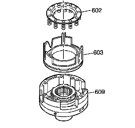 2. Remove the spring assembly (602) and remove the fourth clutch piston assembly (603) from the driven sprocket support assembly (609).