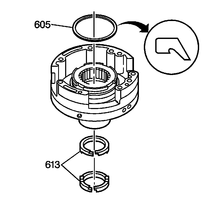1. Use J 4670-01 clutch spring compressor in order to compress the fourth clutch spring assembly (602). Remove the snap ring (601) from the driven sprocket support assembly.