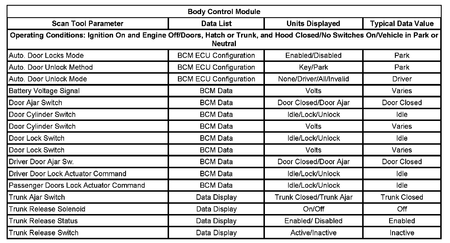 Scan Tool Data List