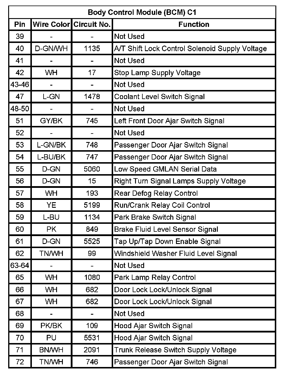 Body Control Module (BCM) C1 (Pin 39 To 72):