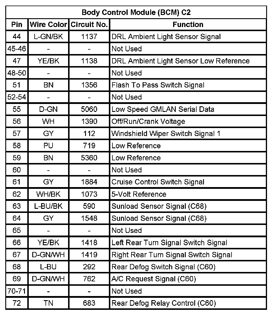 Body Control Module (BCM) C2 (Pin 44 To 72):