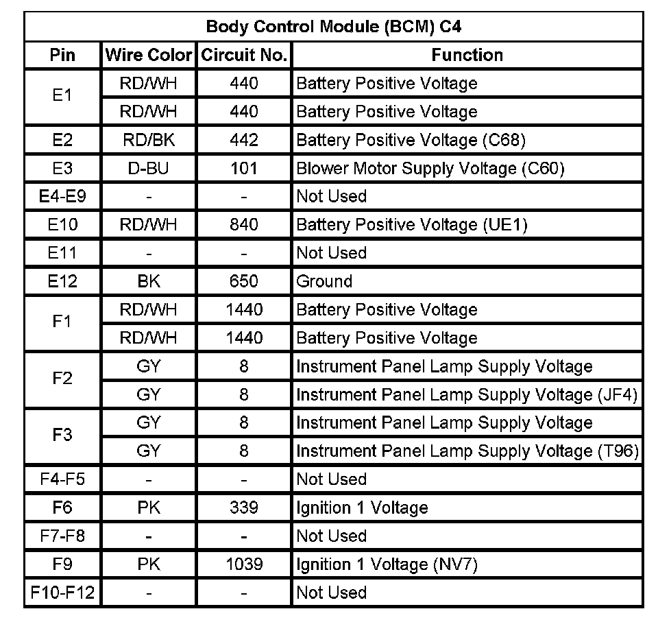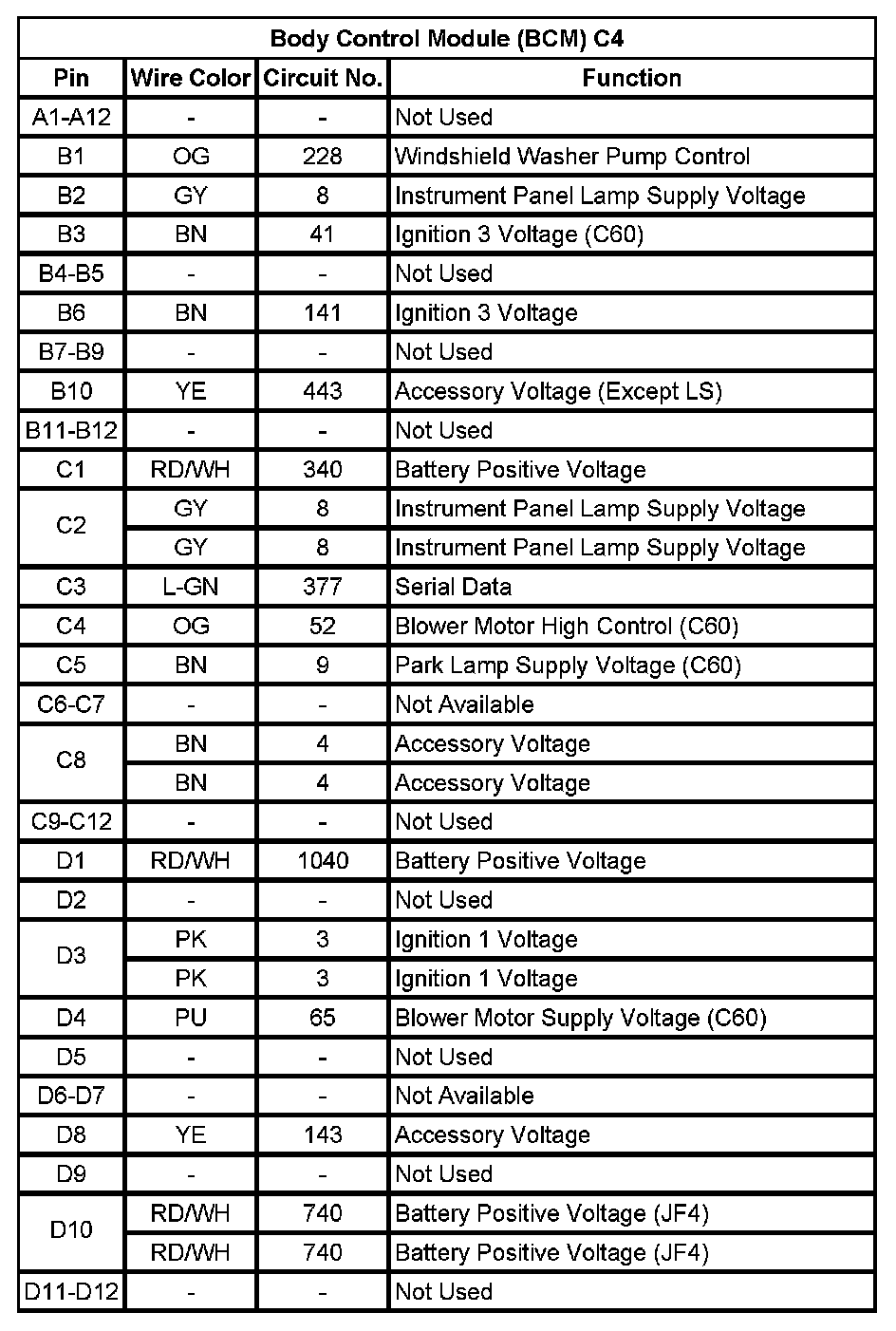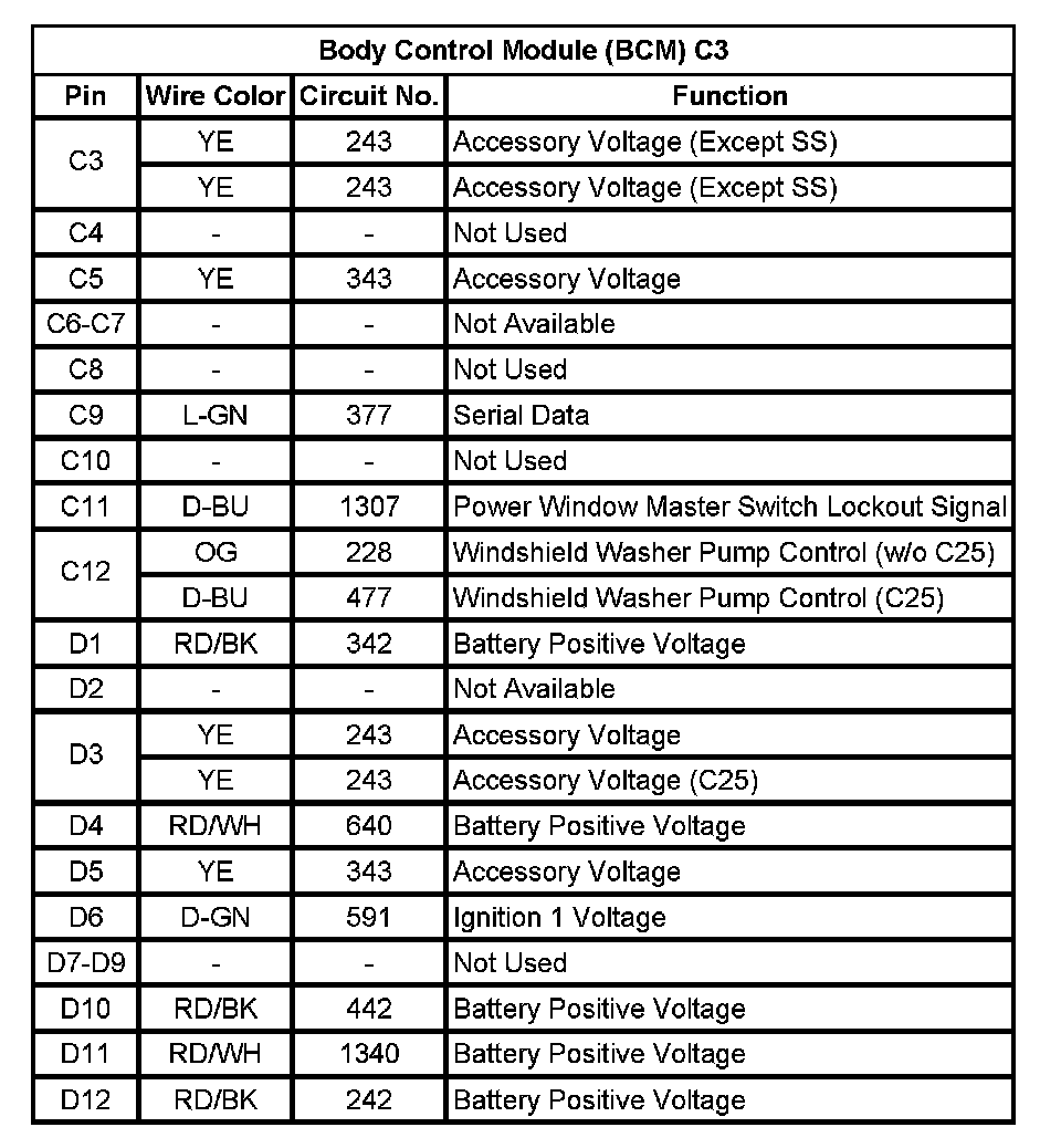 Body Control Module (BCM) C3 (Pin C3 To D12):