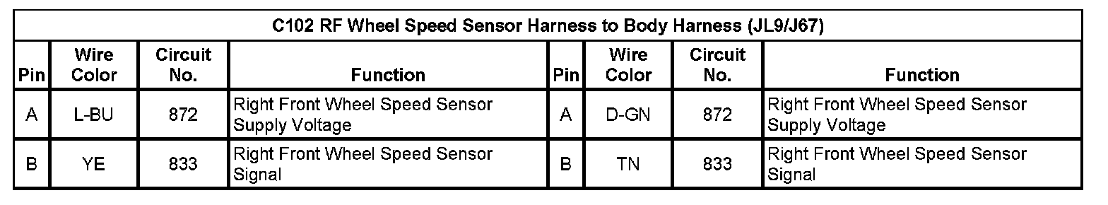 C102 RF Wheel Speed Sensor Harness to Body Harness (JL9/J67)
