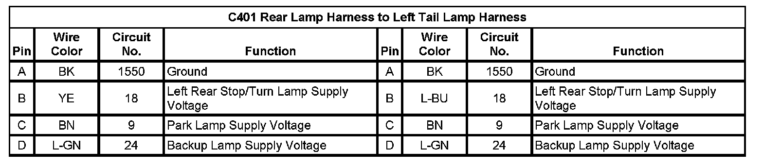 C401 Rear Lamp Harness to Left Tail Lamp Harness