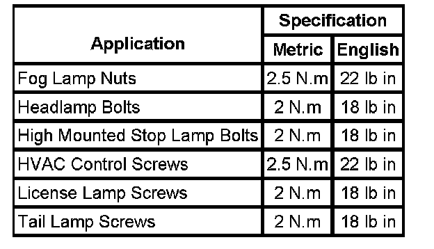 Fastener Tightening Specifications