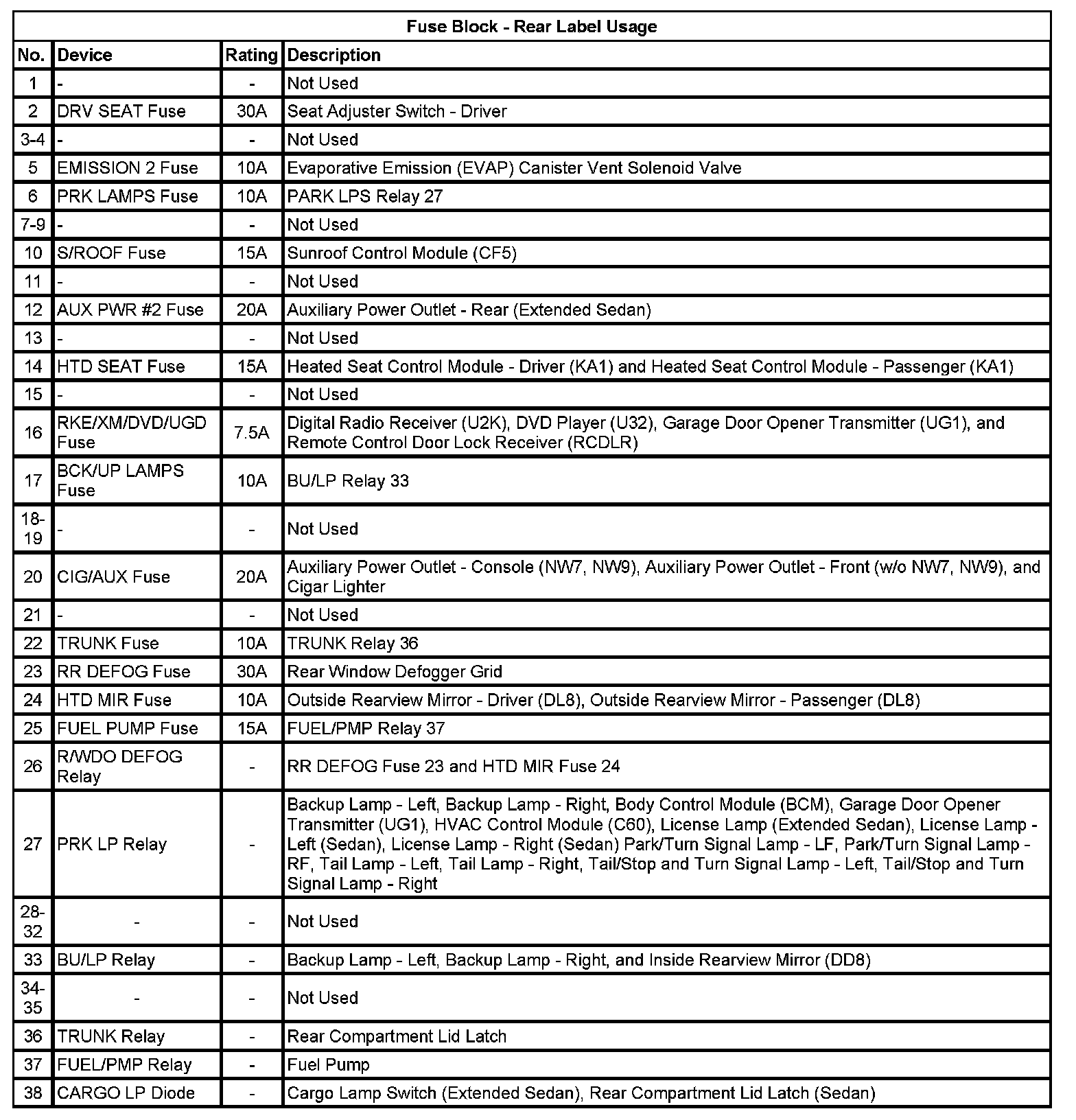 Fuse Block - Rear Label