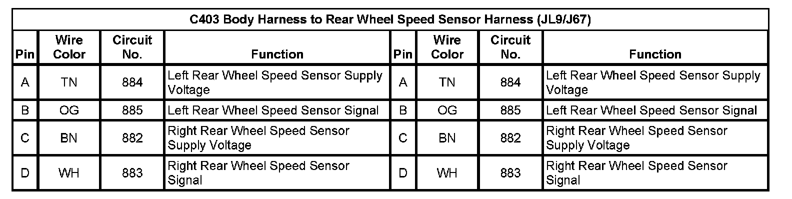 C403 Body Harness to Rear Wheel Speed Sensor Harness (JL9/J67)