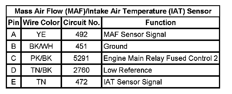 Mass Air Flow (MAF)/Intake Air Temperature (IAT) Sensor