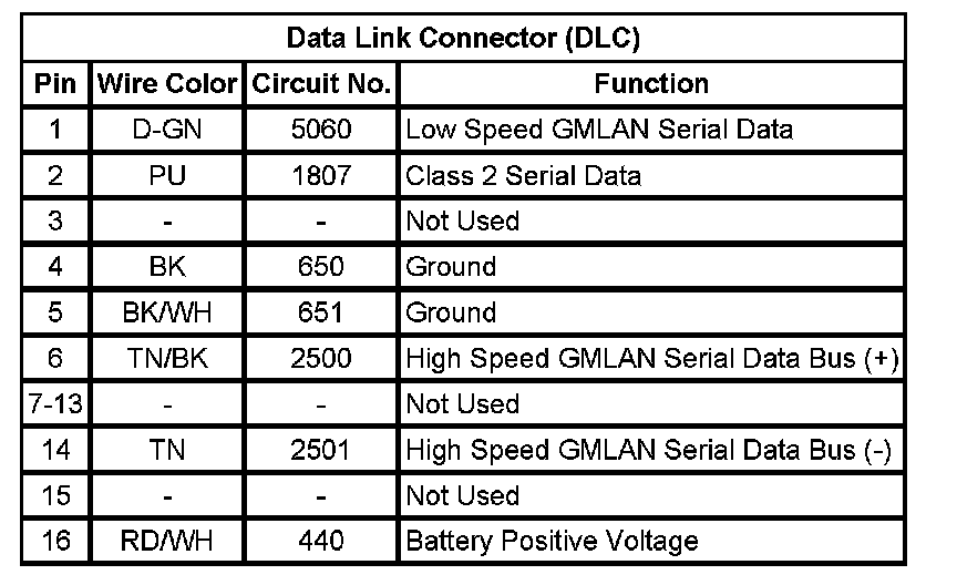 Data Link Connector: Diagrams