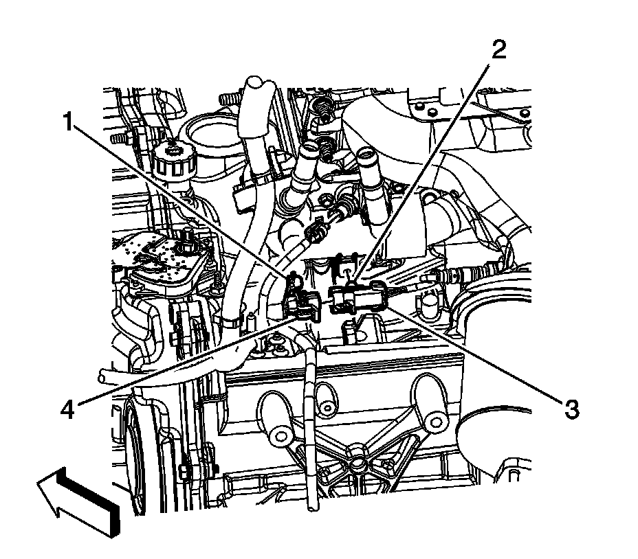 2. Disconnect the engine wiring harness electrical connector (4) from the HO2S electrical connector (3).