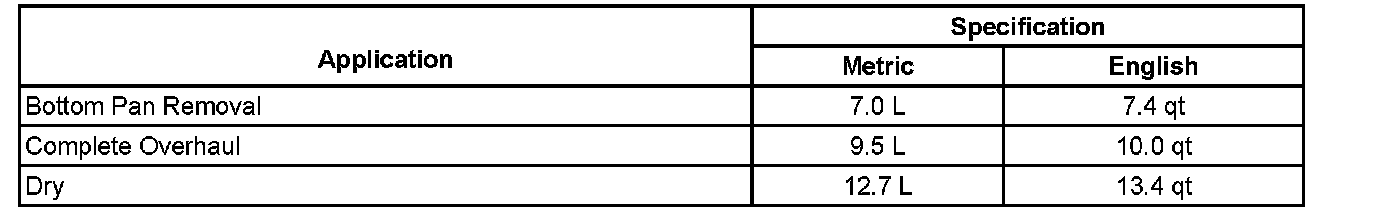 Fluid Capacity Specifications: