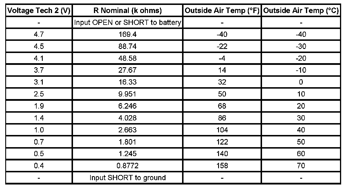 Sensor Resistance Table (Ambient Air Temp Sensor)