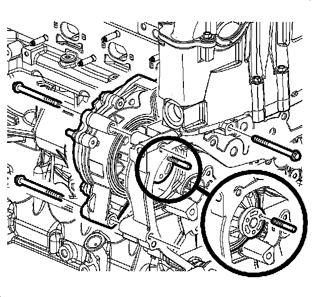 Install the inner water pump sprocket bolts. After 2 are snug, remove the guide pin and install the 3rd bolt.