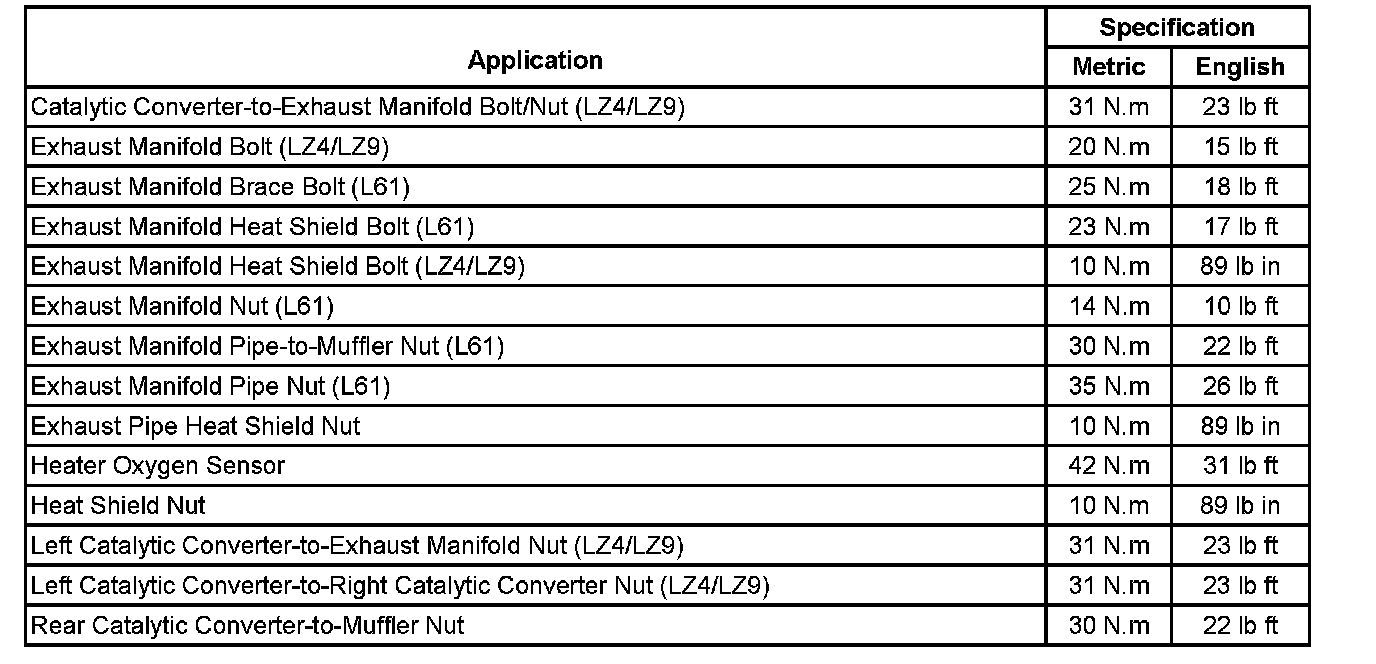 Fastener Tightening Specifications: