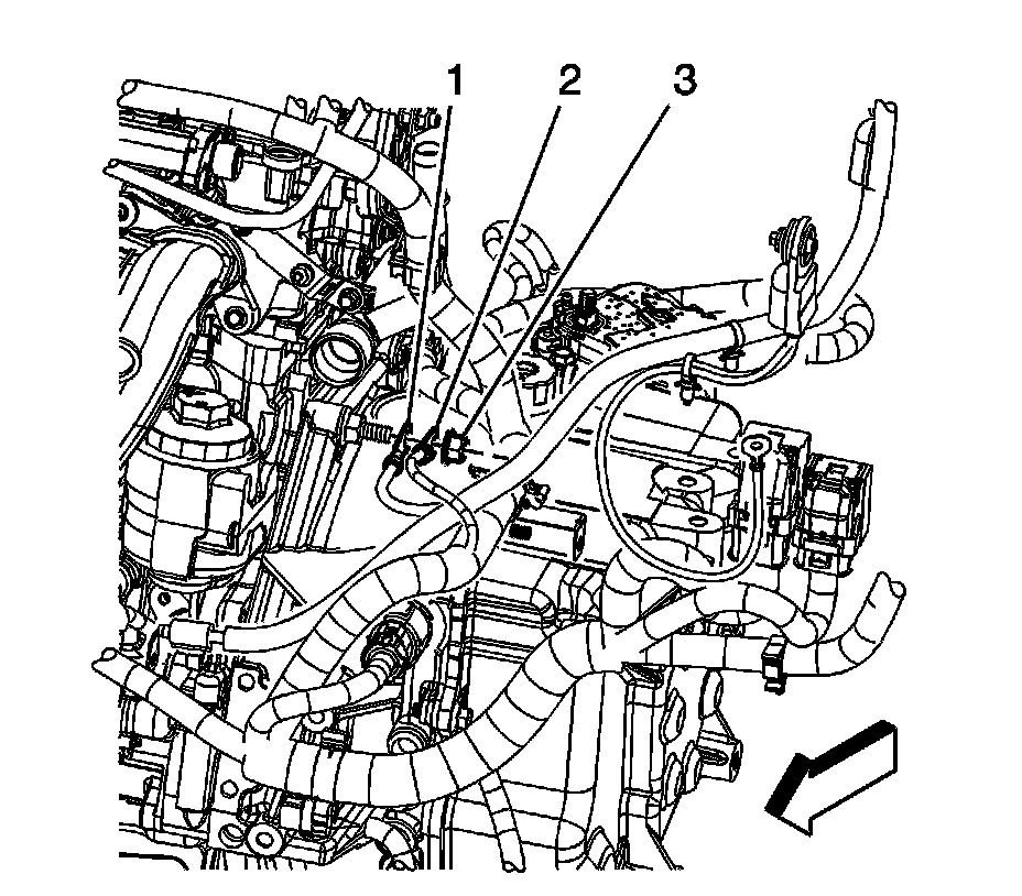 6. Remove the engine wiring harness nut (3).