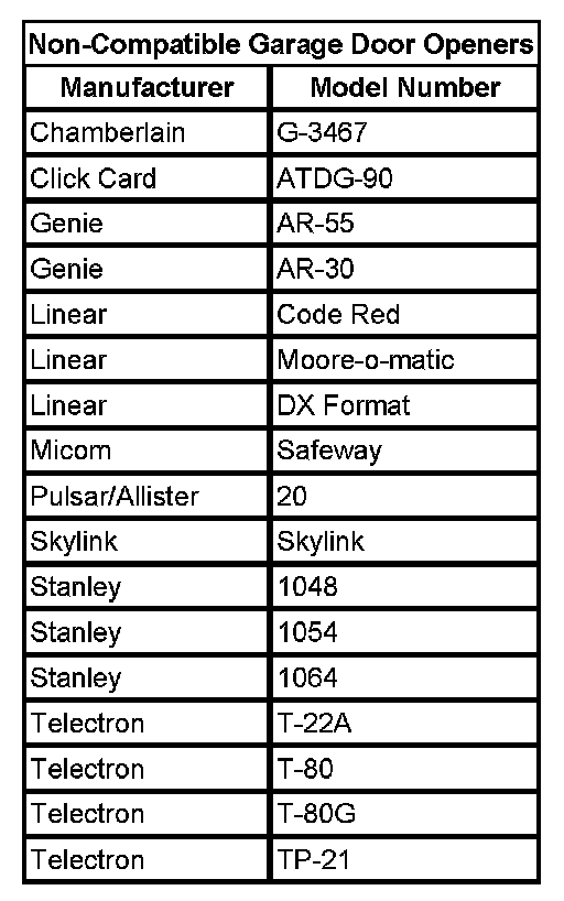 Important: Do not use the garage door opener (GDO) with any garage door opener that does not have the stop and reverse safety feature. This includes any garage door opener model manufactured before April 1, 1982.
