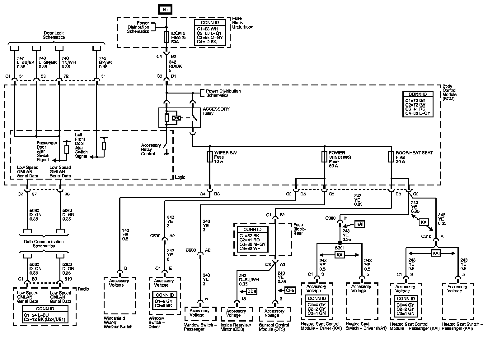 The locations for the Connectors, Grounds, Splices, and Grommets shown within these diagrams can be found via their numbers at Vehicle Locations.