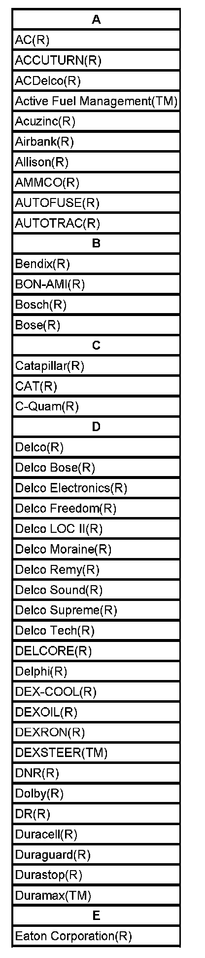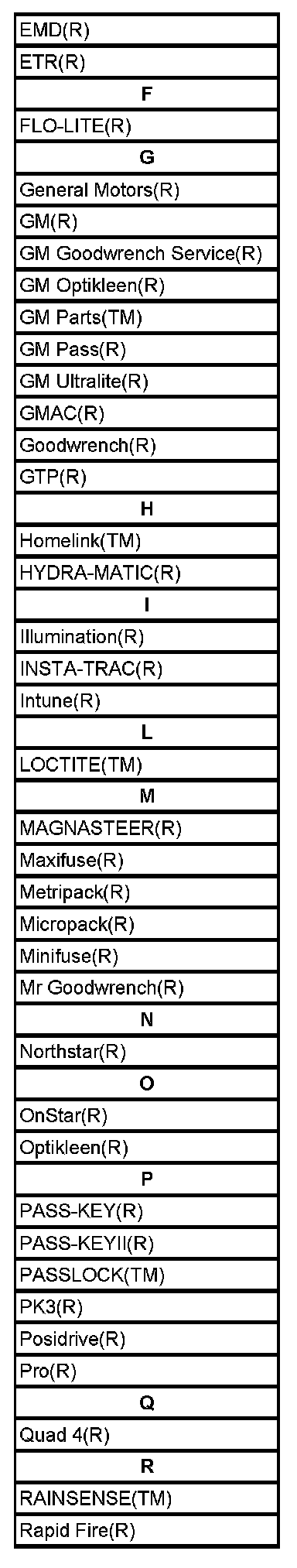 Listed are Registered Trademarks ((R)) or Non-Registered Trademarks ((TM)) which may appear in this Service Data.